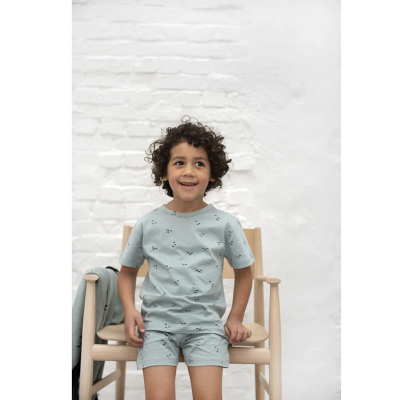 Tieto pyžamá sú roztomilým outfitom pre deti, aby sa pri spánku, maznaní, snívaní a hraní cítili úplne pohodlne. Dvojdielne pyžamo pozostáva z topu s krátkym rukávom s okrúhlym výstrihom a krátkych nohavíc. Vďaka tomu sú ideálne na teplé letné noci.