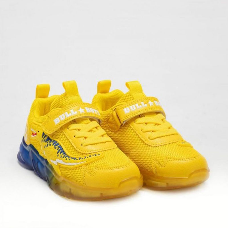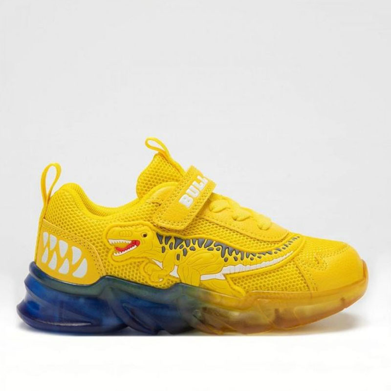 Sandále Bull Boys s dinosaurami, dostupné v mnohých kombináciách farieb a materiálov, sa vyznačujú exkluzívnymi dizajnmi v tvare dinosaura a charakteristickými svetlami, ako aj originálnymi odtlačkami nôh pod podrážkou.