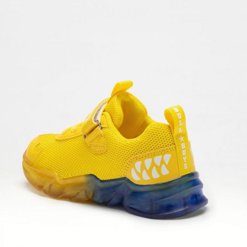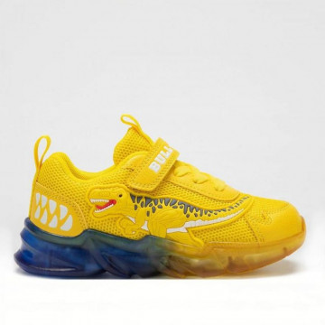 Tenisky BULL BOYS DNAL3366 so špeciálnym dizajnom dinosaurov: T-Rex. Svetlá v podrážke, zvršok z technického materiálu a sieťoviny, vzadu detail zúbkov T-Rex, praktické zapínanie na suchý zips a elastické šnúrky, viacfarebná protišmyková podrážka, vyberateľná stielka.
