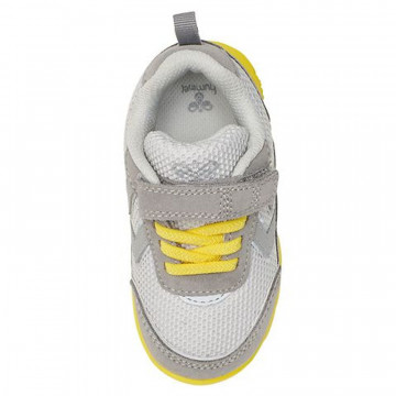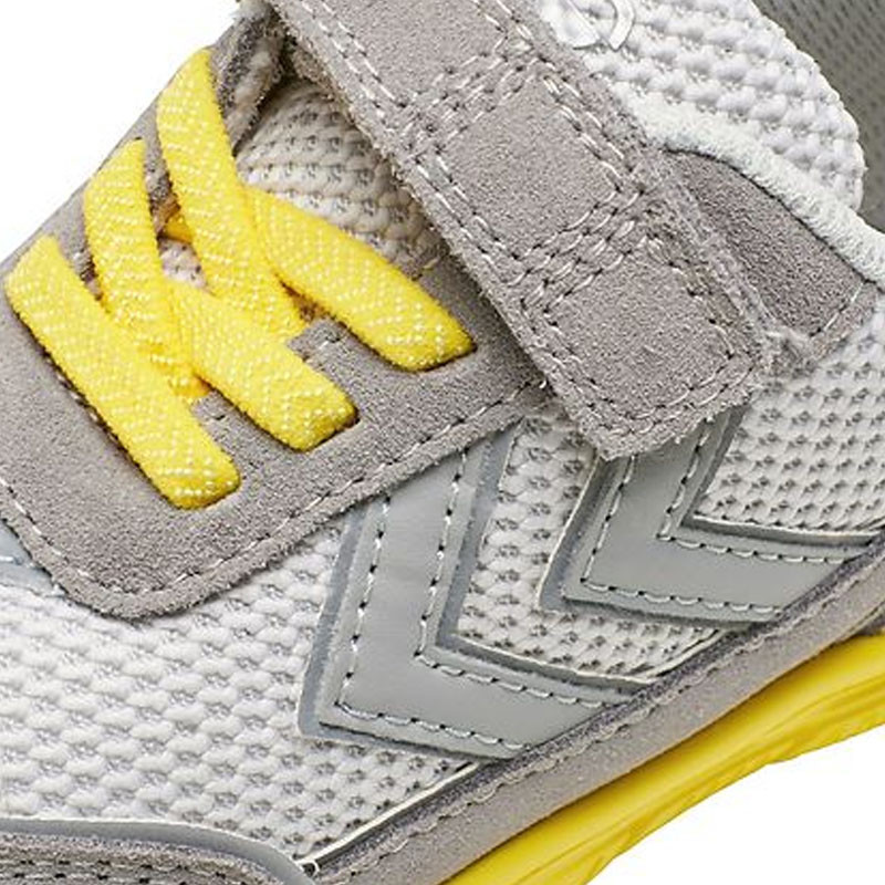 Topánky Hummel sa otvárajú pomocou praktických pásikov na suchý zips cez topy a majú žlté gumičky na chodidlách pre rýchle a jednoduché nastavenie. Okolo otvorov sú topánky dobre polstrované a vo vnútri majú ľahkú textilnú podšívku, pričom na spodnej časti sú mäkké vyberateľné vložky. Podošva je žltá s praktickým vzorom na spodnej časti, ktorý poskytuje dobrú oporu.