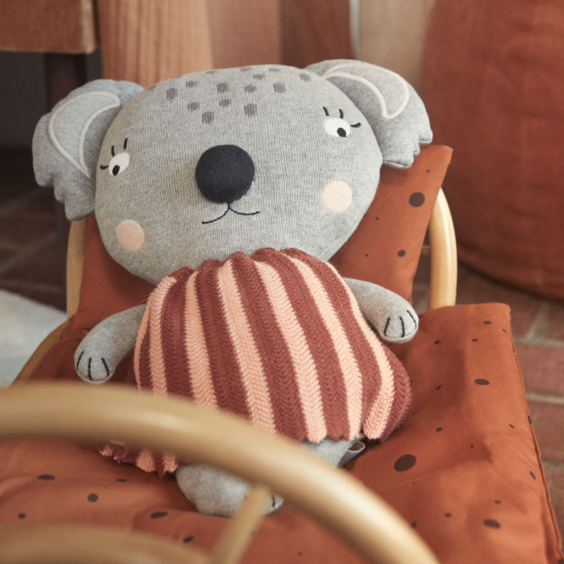 Mami Koala je roztomilá na pohľad a pohodlná na maznanie, vďaka čomu je dokonalým doplnkom v každej detskej izbe. Oblečenie je možné aj vyzliecť. Koala Mami je vyrobená z bavlny, je žakárovo pletená a má výplň z mäkkého vlákna.