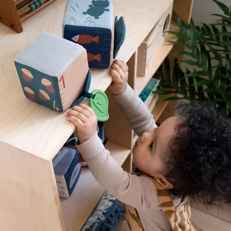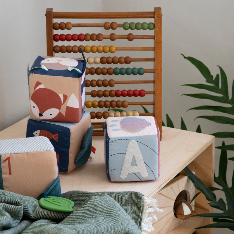 Tieto štyri zábavné kocky boli vytvorené pre prvé hry vášho bábätka, aby ho zaujali, potešili a podnietili jeho zvedavosť. Sú ideálne na hranie na brušku a ako prvá hračka, po ktorej sa vaše bábätko môže naťahovať a precvičovať si koordináciu ruka-oko.