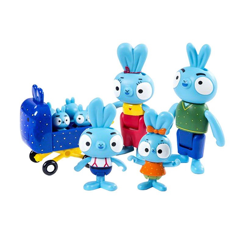 Táto zberateľská darčeková sada akčných figúrok obsahuje roztomilého zajačika Bopa a jeho hravú sestru Boo, ako aj mamu, otca a rozkošné zajačiky. Bábätká sedia v modrom kočíku s kolesami. Figúrky môžu pohybovať rukami, nohami a hlavou a dajú sa pripojiť k doplnkom pomocou zárezov na rukách a nohách a môžu uchopiť kočík. Zajačiky krútia uškami a bábätká v útlom detstve poskakujú hore-dole. Balenie obsahuje ďalšie Vekové odporúčanie: vhodné pre deti od 3 rokov.