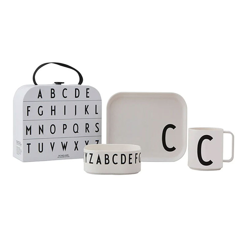 DESIGN LETTERS 4-dielny detský jedálenský set "Classics in a suitcase" - C