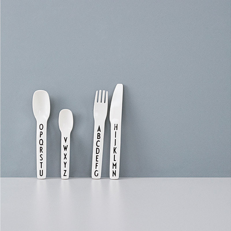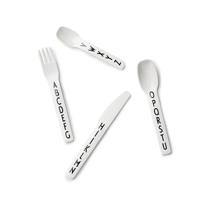 Deti vedia byť v jedle niekedy pekne tvrdohlavé, preto je niekedy dobré zaujať napríklad príborom s abecedou v čiernej typografii navrhnutým renomovaným architektom Arne Jacobsenom. V sete príborov z melamínu nájdete jeden nôž, vidličku, lyžicu a čajovú lyžičku. Príbor je vyrobený z moderného materiálu tritan, ktorý neobsahuje nebezpečné BPA a neuvoľňuje žiadne škodlivé látky do jedla. Navyše je ľahučký a vyznačuje sa zvýšenou odolnosťou proti praskaniu a nárazom, preto je pre deti viac ako vhodný.