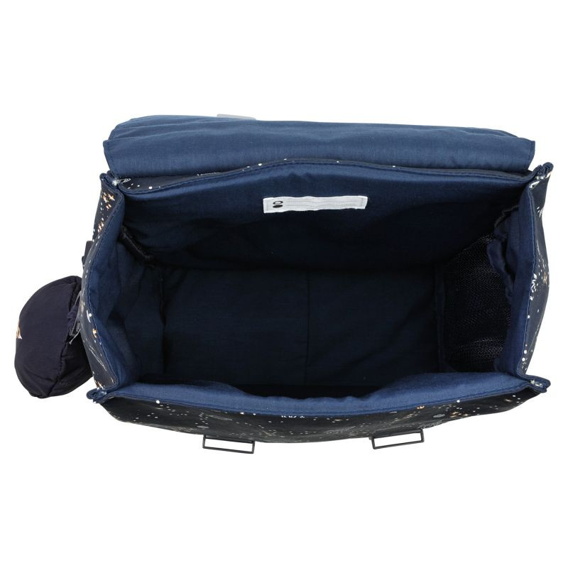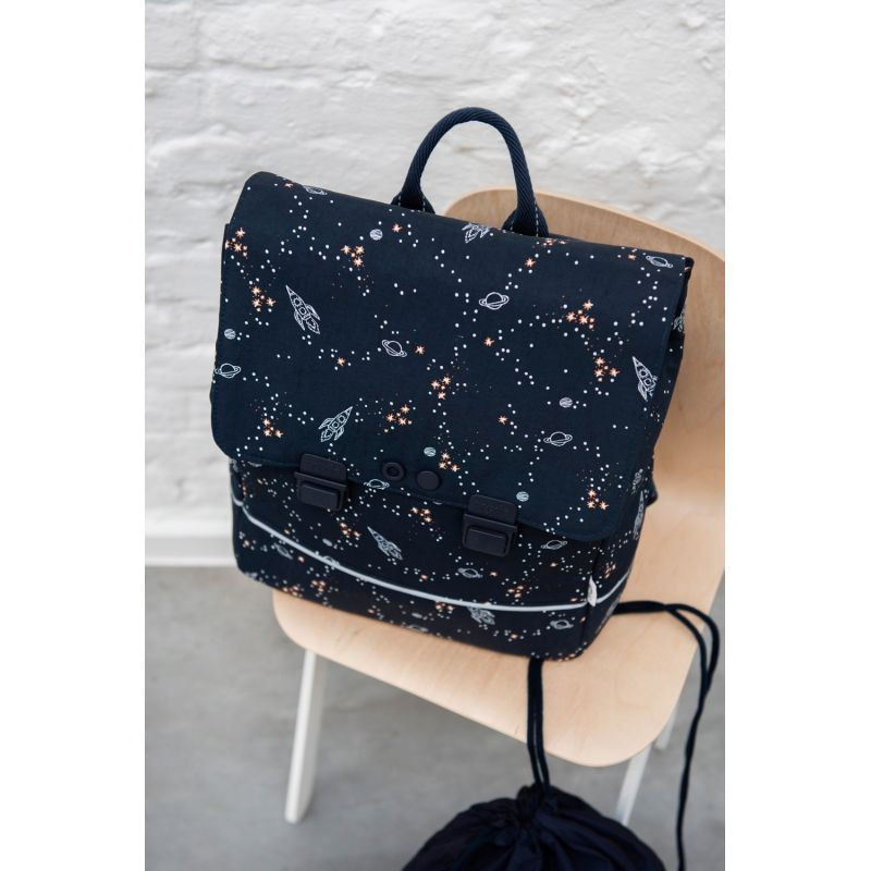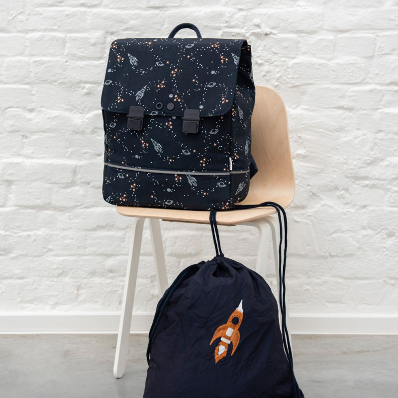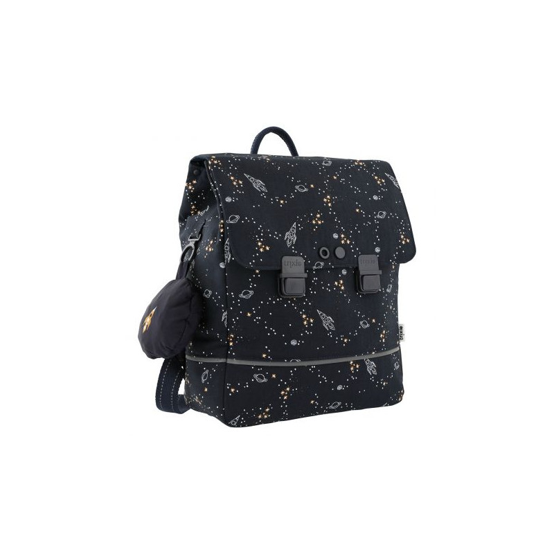 Školský batoh Space od Trixie je perfektný batoh pre prvý stupeň a nasledujúce ročníky. Dostatok miesta na fľašu na pitie, desiatu, obal na A4, zošity navyše a školský diár, dokonca aj bunda či sveter sa perfektne zmestia. Vodoodpudivý, priestranný batoh má polstrované, nastaviteľné ramenné popruhy, reflexný pásik, pevnú rukoväť, držiak na fľašu na pitie, menovku a ľahko sa zapína na 2 klipy. Navyše s taškou získate zadarmo skladaciu tašku na pomôcky či obuv / krúžky, ktorú si môžete pripevniť k brašni pomocou klipov a perfektne sa hodí k vášmu novému školskému batohu.