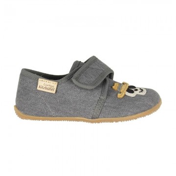 Krásne domáce papučky Living Kitzbühel zo sivého plátna s dvoma rôznymi vzormi aplikácií.