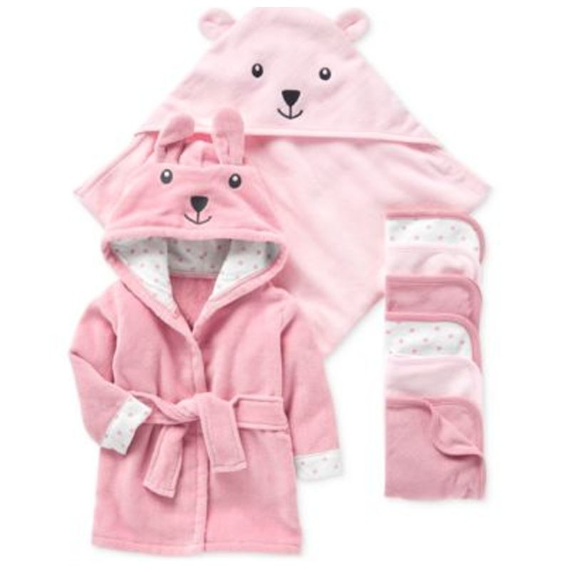 Rozkošná a príjemná osuška s aplikáciou medvedíka pre osušenie bábätka po očistnom kúpeli.