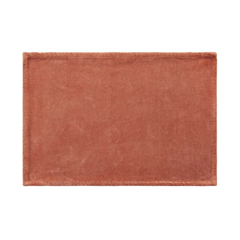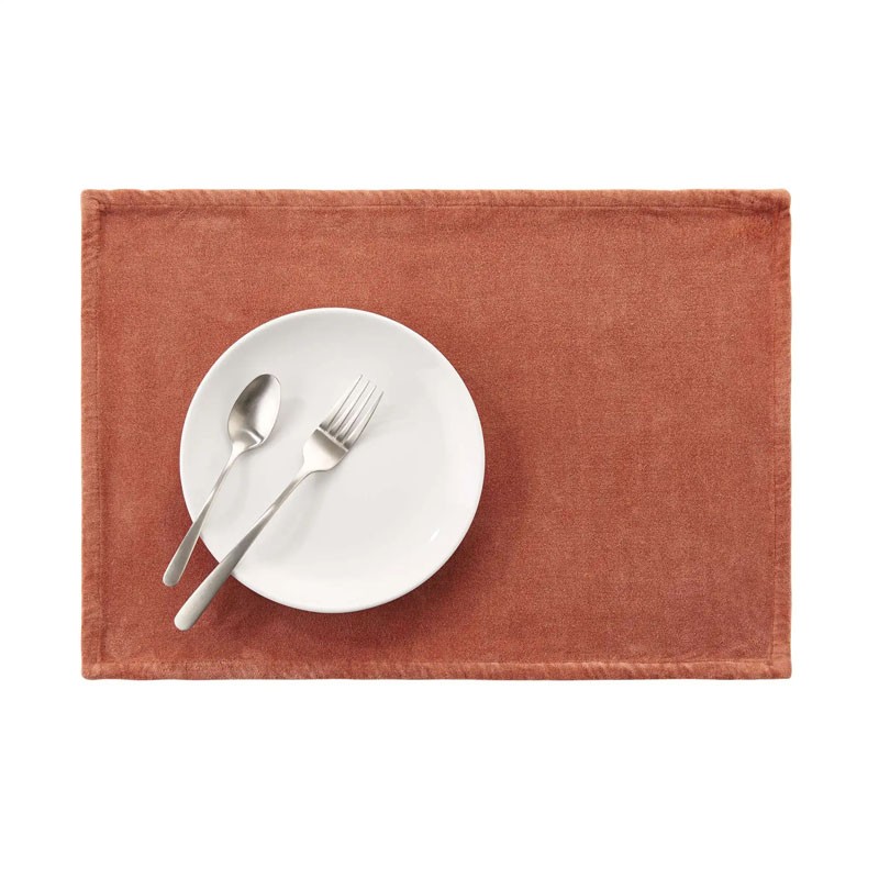 Krásne podmanivé. Svetlo červené prestieranie SUNSET z čistej bavlny prináša na váš prestretý stôl trendy zamatový vzhľad.