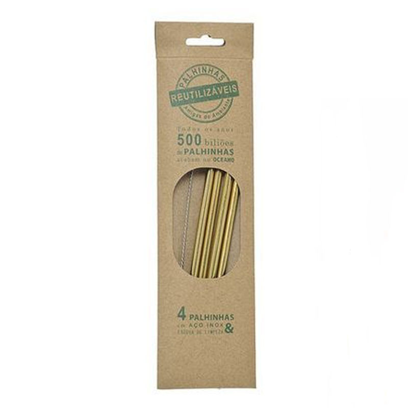 Slamky na pitie z nehrdzavejúcej ocele, šetrné k životnému prostrediu v sade 4ks. Sada obsahuje čistiacu kefu.