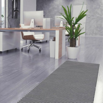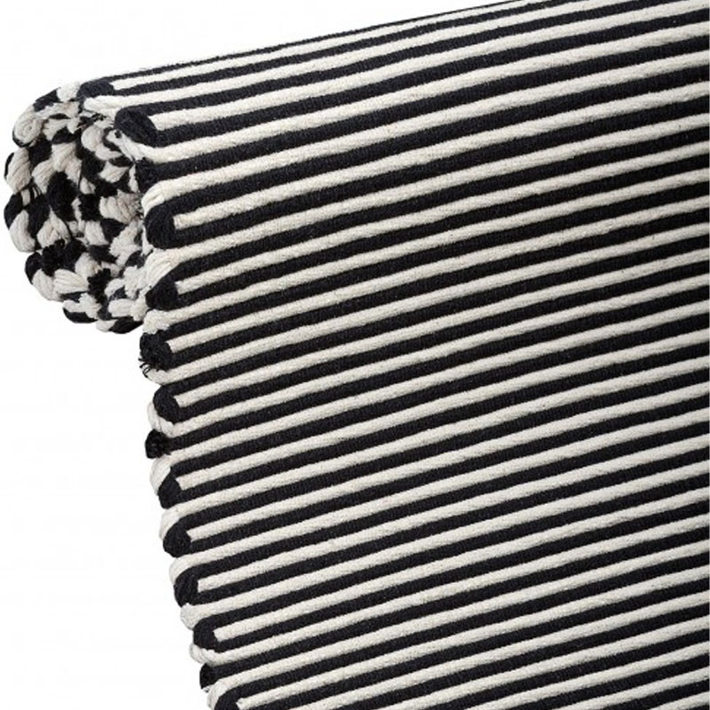 Ručne robený bavlnený koberček v čierno-bielom prevedení.