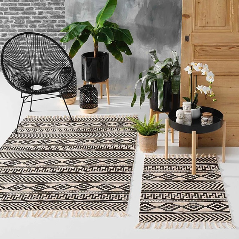 Žakárový malý koberec so strapcami zo 100% bavlny.