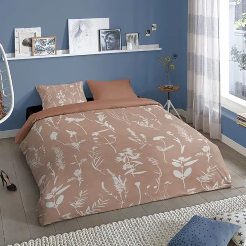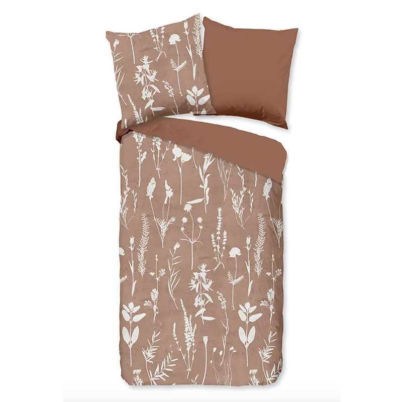 2-dielny set bavlnených obliečok s prírodným motívom "floral" v neutrálnej farbe.
