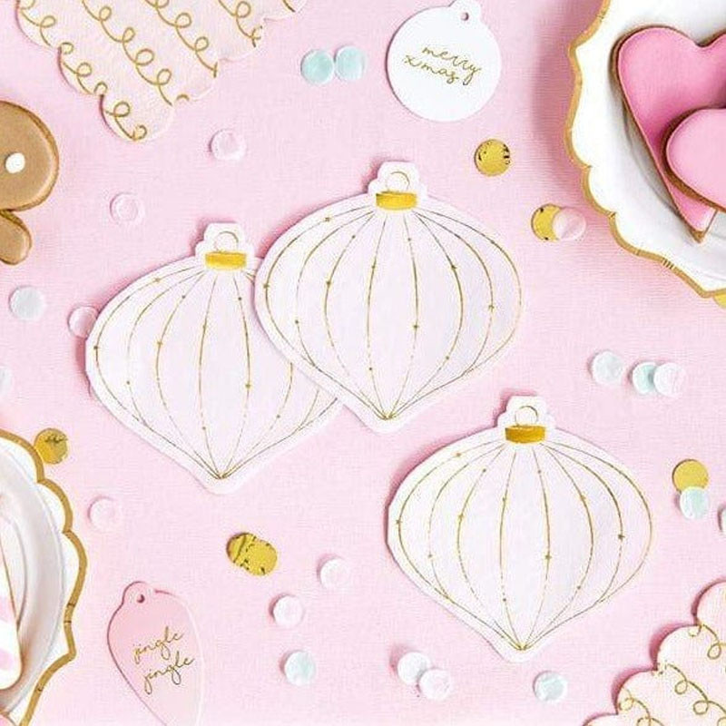 Najsladšie vianočné obrúsky sú tieto ružovo-zlaté servítky v tvare vianočných ozdôb, ktoré sa hodia na každý trendový vianočný stôl!